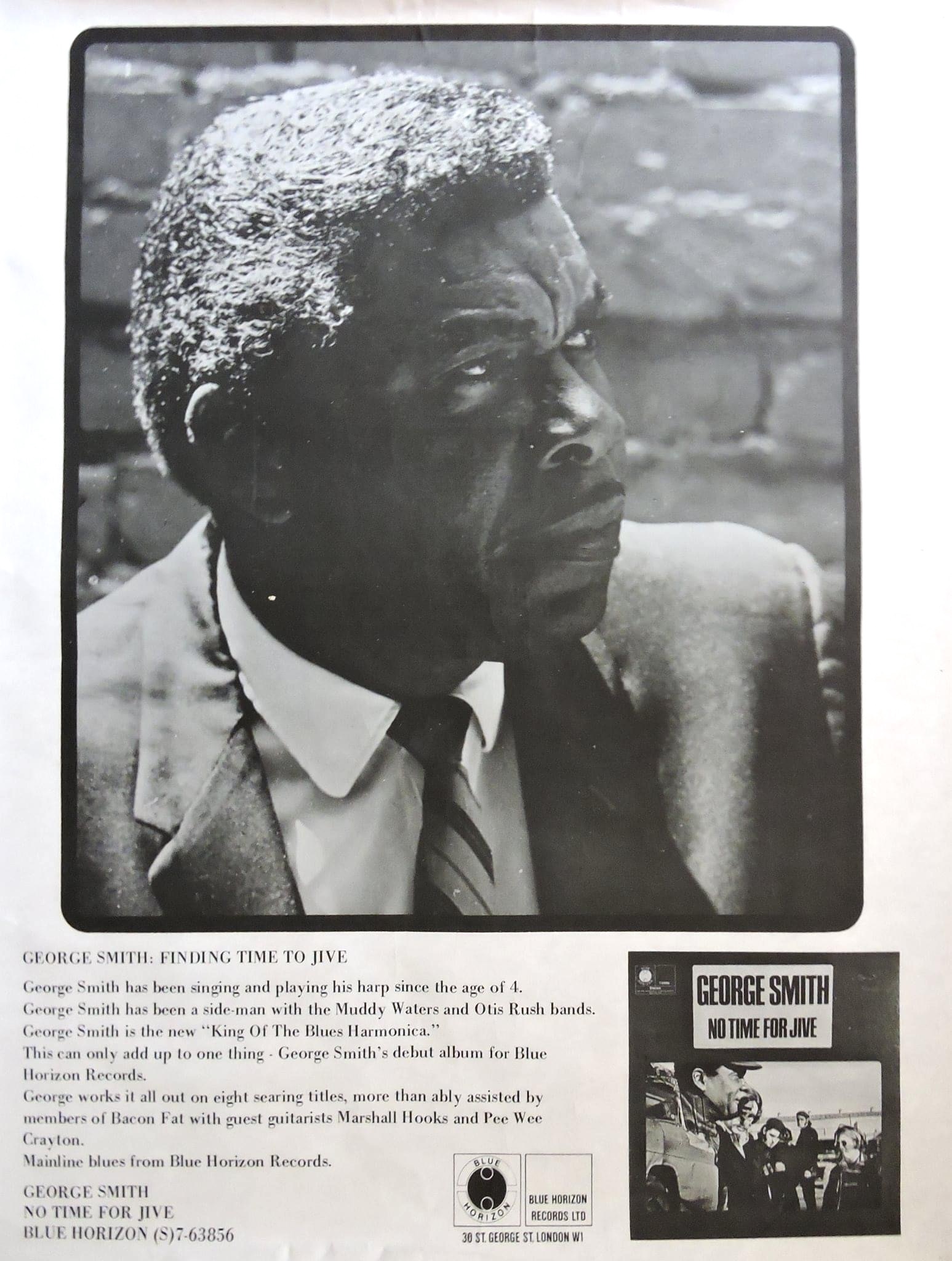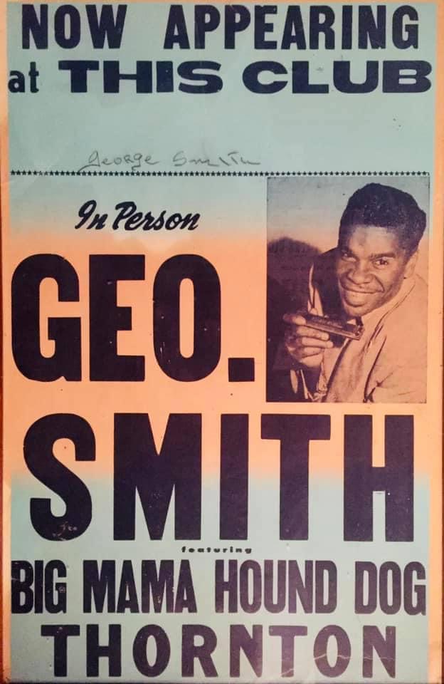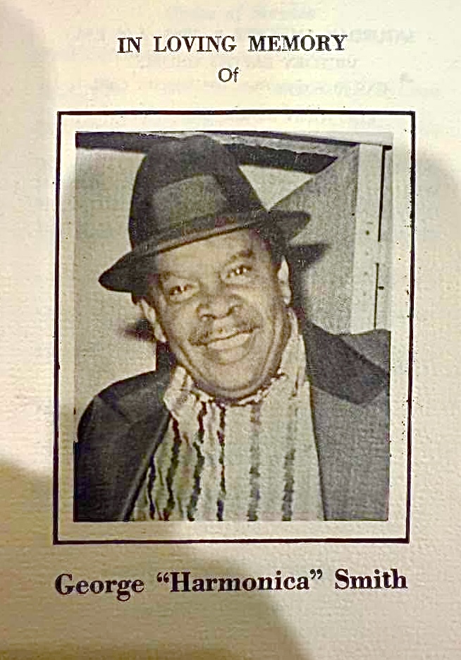 George Harmonica Smith was known to false advertise himself under the names of more famous harmonica players such as Little Walter or Jimmy Reed! Charlie Lange once told the story of passing by a club that said Jimmy Reed Tonight! When he went to the show, it was actually George Harmonica Smith. During the break, Charlie went up to George and said “You sound really great but you’re not Jimmy Reed.” George responded by saying “Shhhhh.”