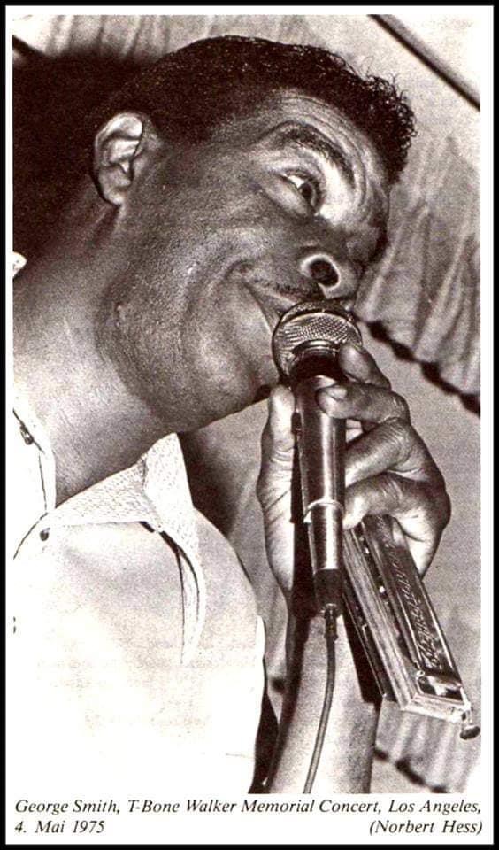 This highly influential harmonica player would become a stylistic template for West Coast harmonica players. Born in West Helena, Arkansas, George would land in Chicago and Kansas City before making California is permanent home. In addition to his great recordings as a singer and frontman, he was also a prominent sideman making records with Muddy Waters, Otis Spann, Big Mama Thornton, Big Joe Turner, Little Johnny Taylor, Jesse Thomas, Champion Jack Dupree, Eddie Taylor, Lonesome Sundown, T-Bone Walker and Sunnyland Slim. He was a teacher and father figure to Rod Piazza and William Clarke. Please enjoy these wonderful photos of this great harmonica player!