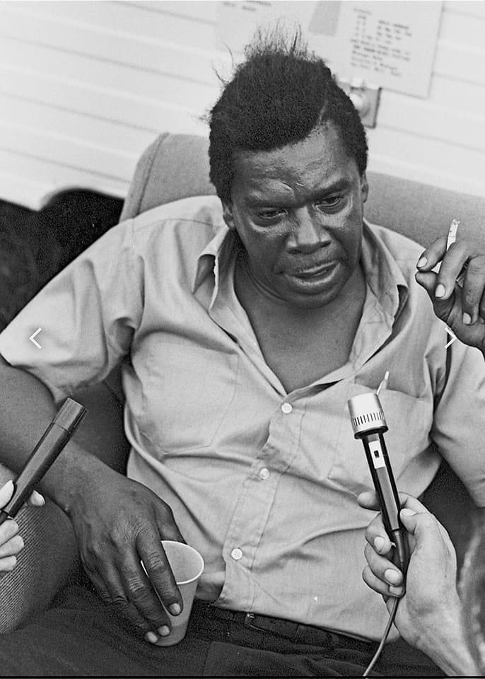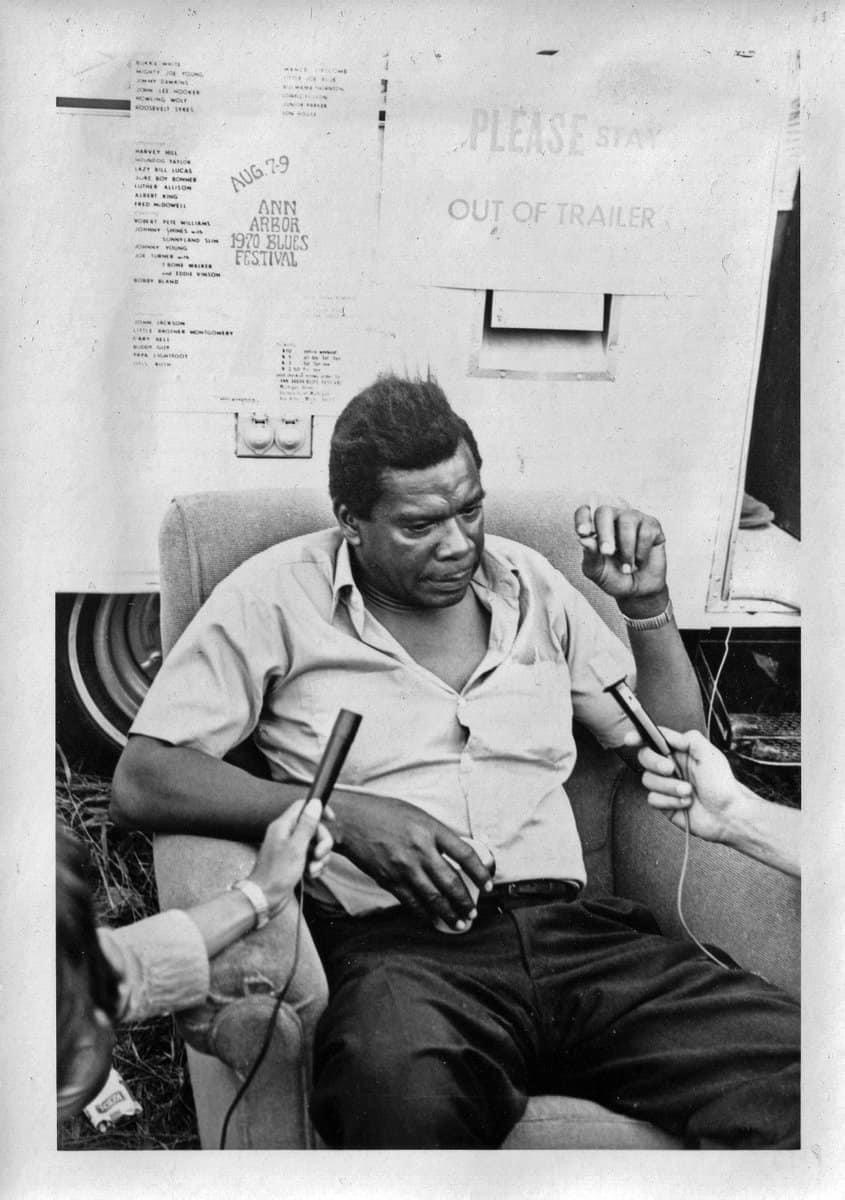 George Harmonica Smith being interviewed backstage at the 1970 Ann Arbor Blues Festival.