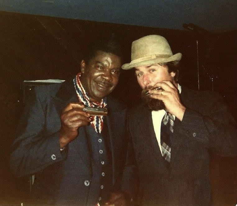 Rod Piazza and his teacher George Harmonica Smith! Killer photo courtesy of Sonny Burnett.