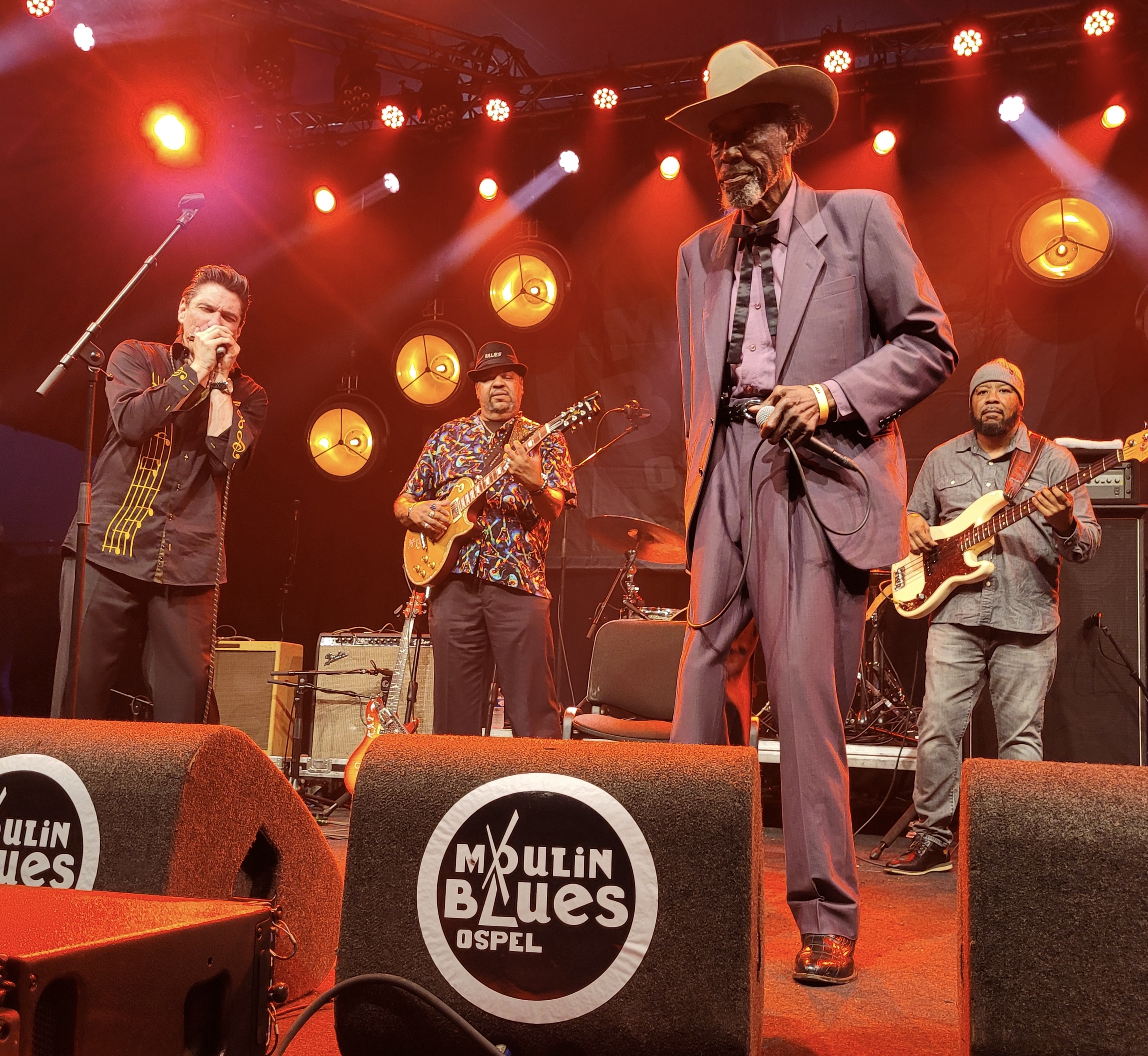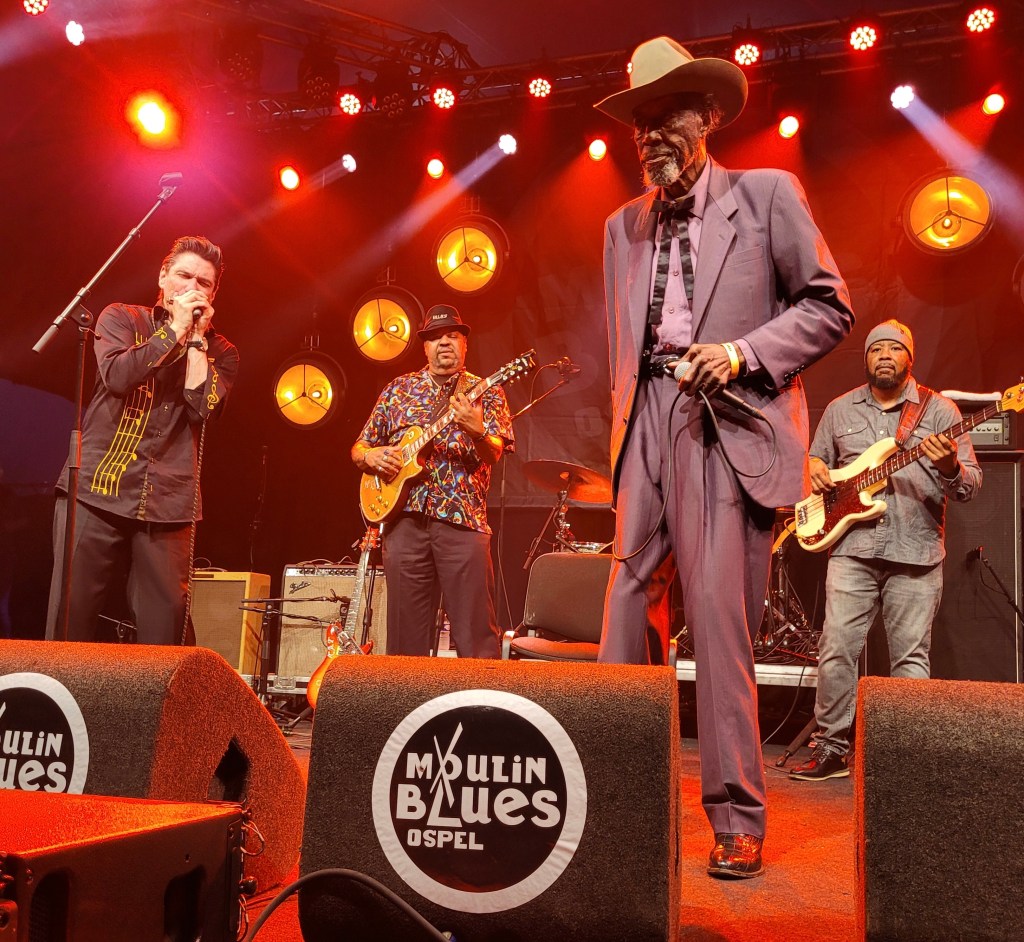 Bob Corritore, Jimi Primetime Smith, Tail Dragger, Yahni Riley at the 2023 Moulin Blues Festival, Netherlands.