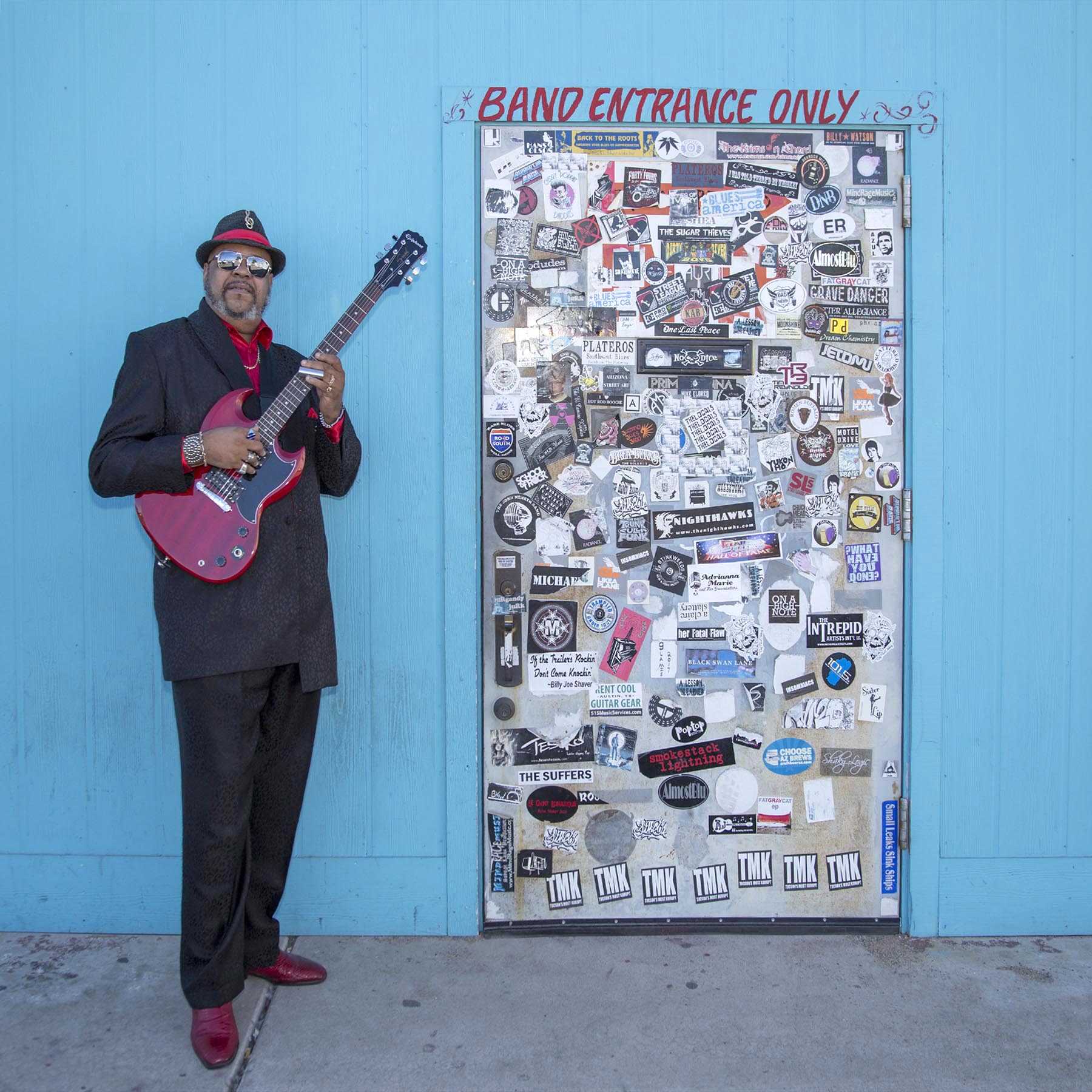 Jimi Primetime Smith in front of the Rhythm Room. Photo by Dave Blake.