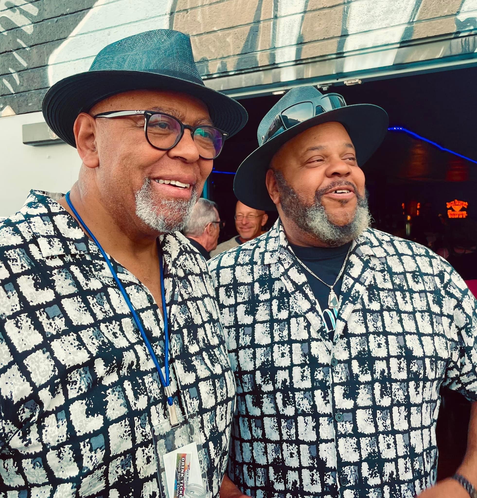 Unintentional wardrobe match! Zack Harmon and Jimi Primetime Smith at the Rhythm Room. Photo Bob Corritore.