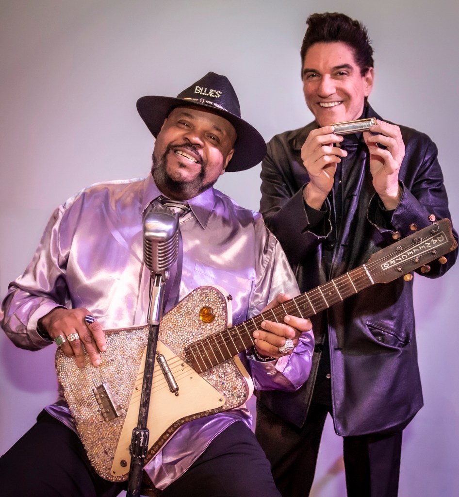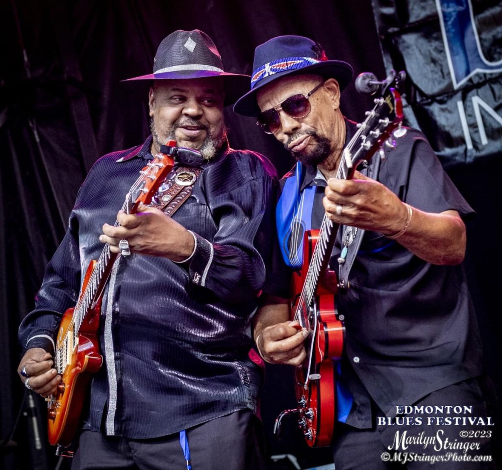 Jimi Primetime Smith and John Primer performing at the 2023 Edmonton Blues Festival. Photo by Marilyn Stringer.