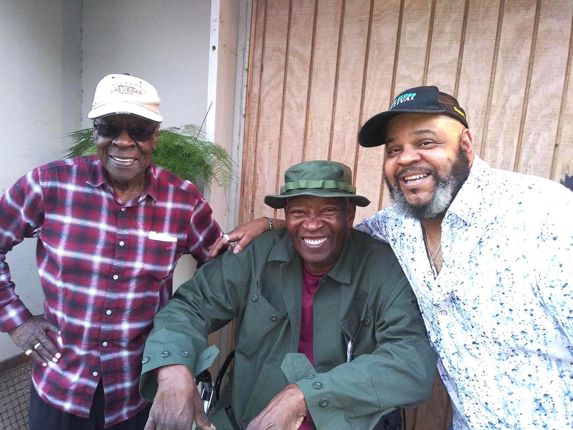 Bob Stroger, Carl Weathersby, Jimi Primetime Smith after a recording session at Tempest Recording. Photo Bob Corritore.