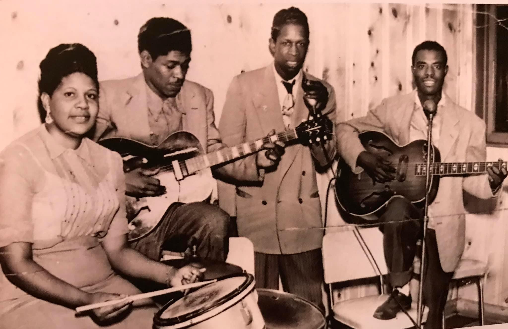 Johnnie Mae Dunson, Amy Van Singel, Jimmy Reed, Jimi Primetime Smith. Photo Jim O’Neal.