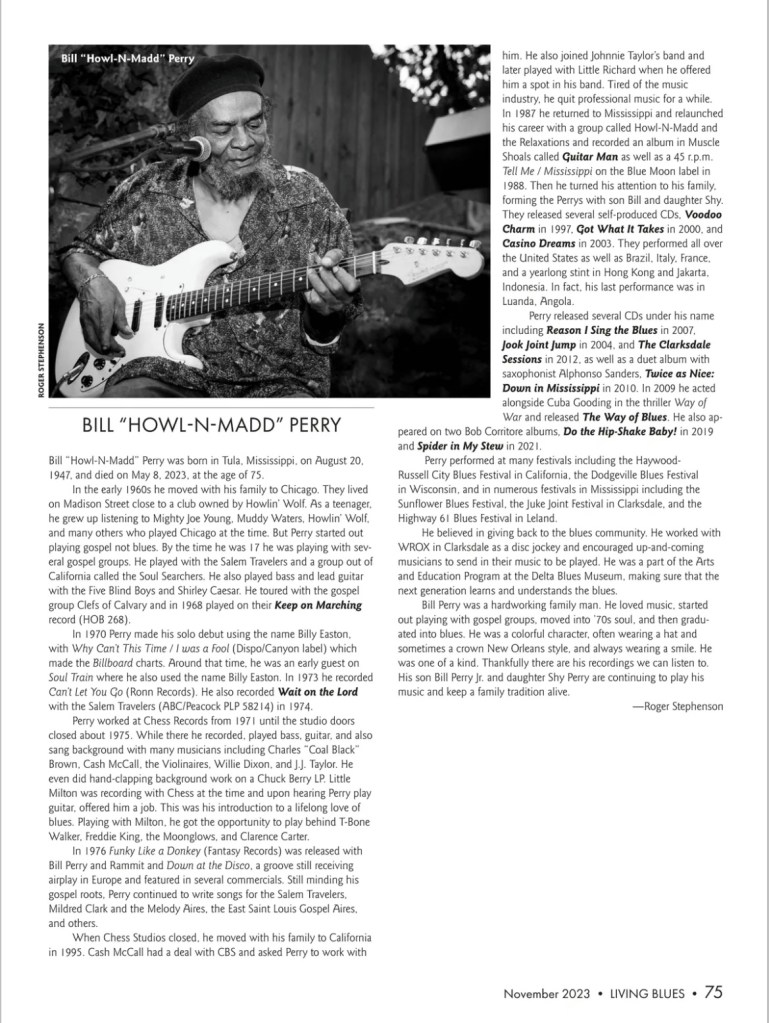 Bill Howl-N-Madd Perry Obituary – Living Blues Share this: Click to share on X (Opens in new window) X Click to share on Facebook (Opens in new window) Facebook Like Loading...