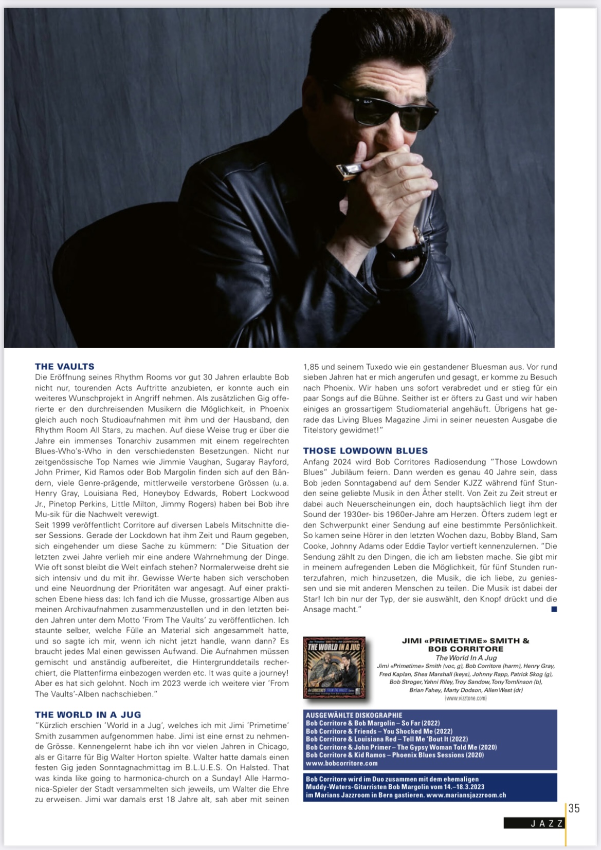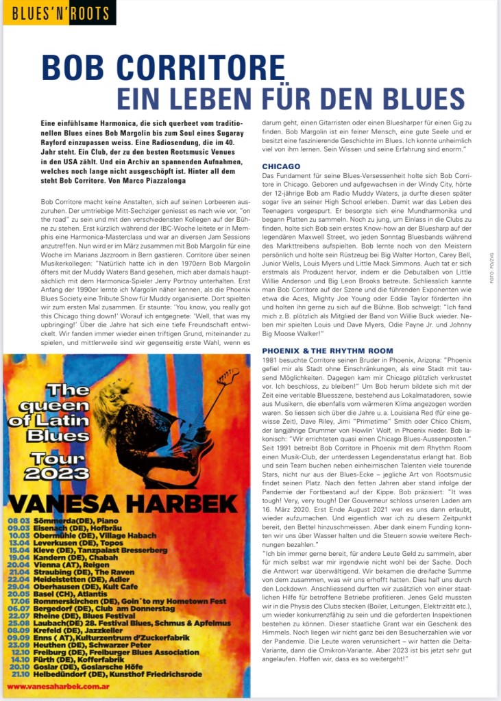 Bob Corritore: Ein Leben Für Den Blues – Jazz ‘n’ More Magazine (Switzerland) Bob Corritore: Ein Leben Für Den Blues – Jazz ‘n’ More Magazine (Switzerland)March 2023 Issue Share this: Click to share on X (Opens in new window) X Click to share on Facebook (Opens in new window) Facebook Like Loading...