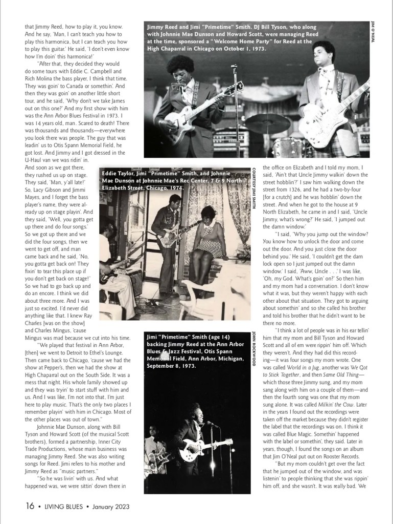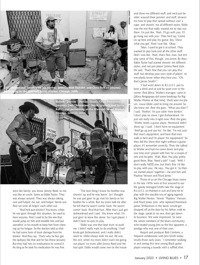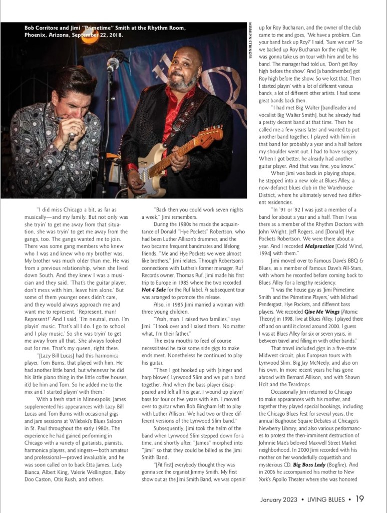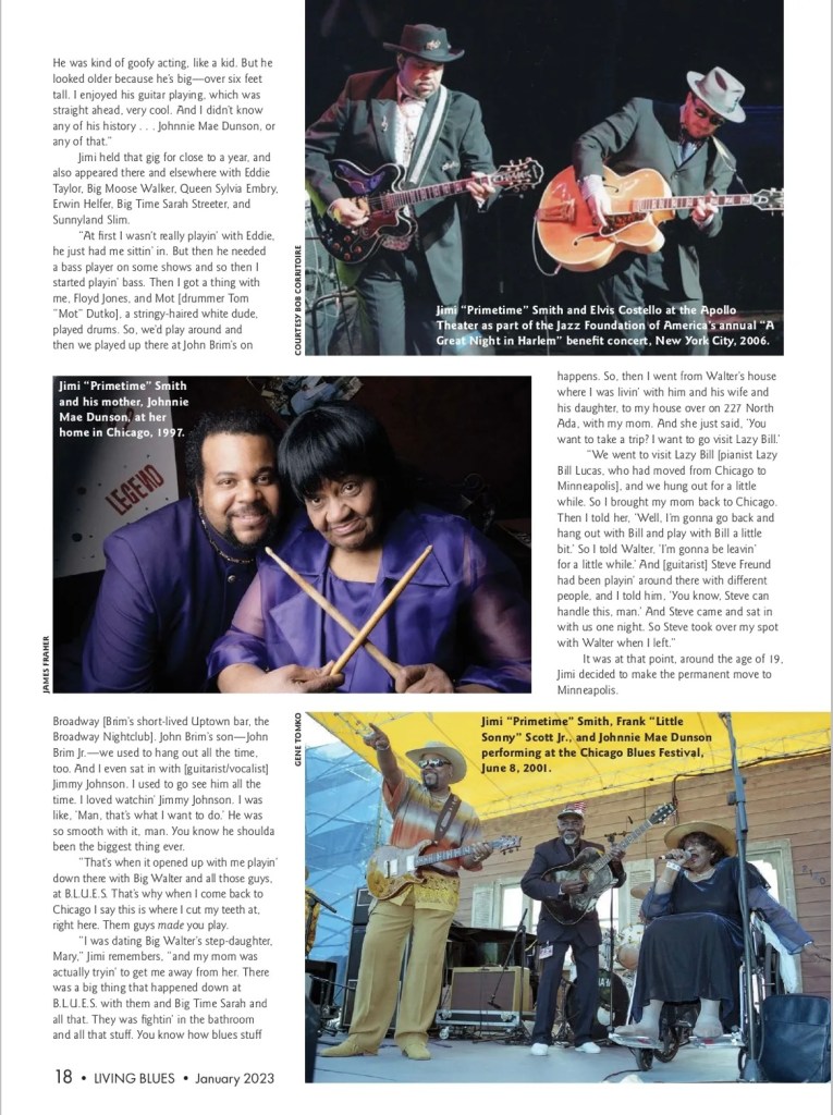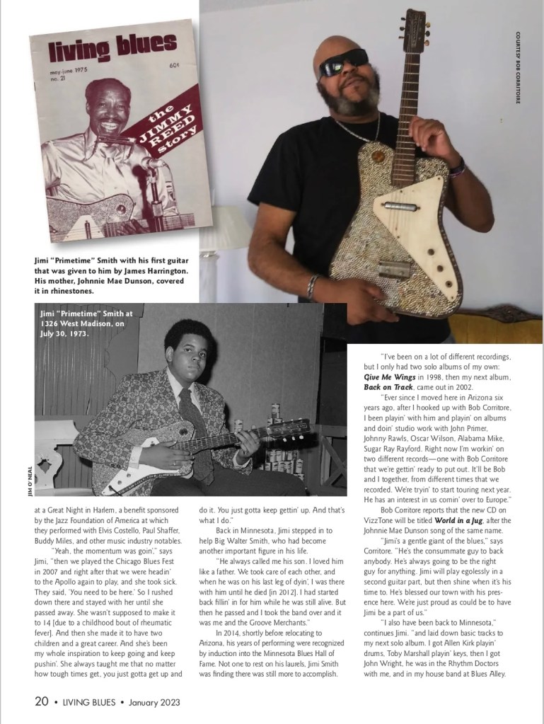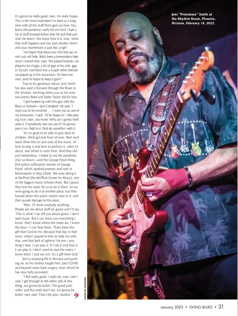 Jimi Primetime Smith Cover Story – Living Blues Magazine Jimi Primetime Smith Cover Story In Living Blues MagazineJanuary/February 2023 Share this: Click to share on X (Opens in new window) X Click to share on Facebook (Opens in new window) Facebook Like Loading...