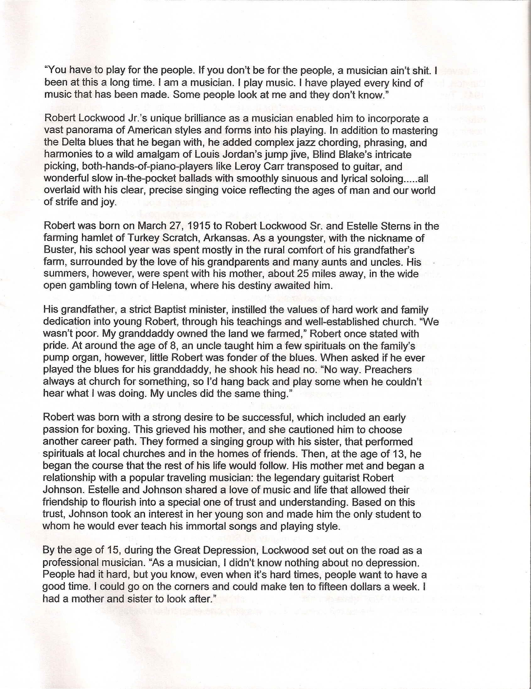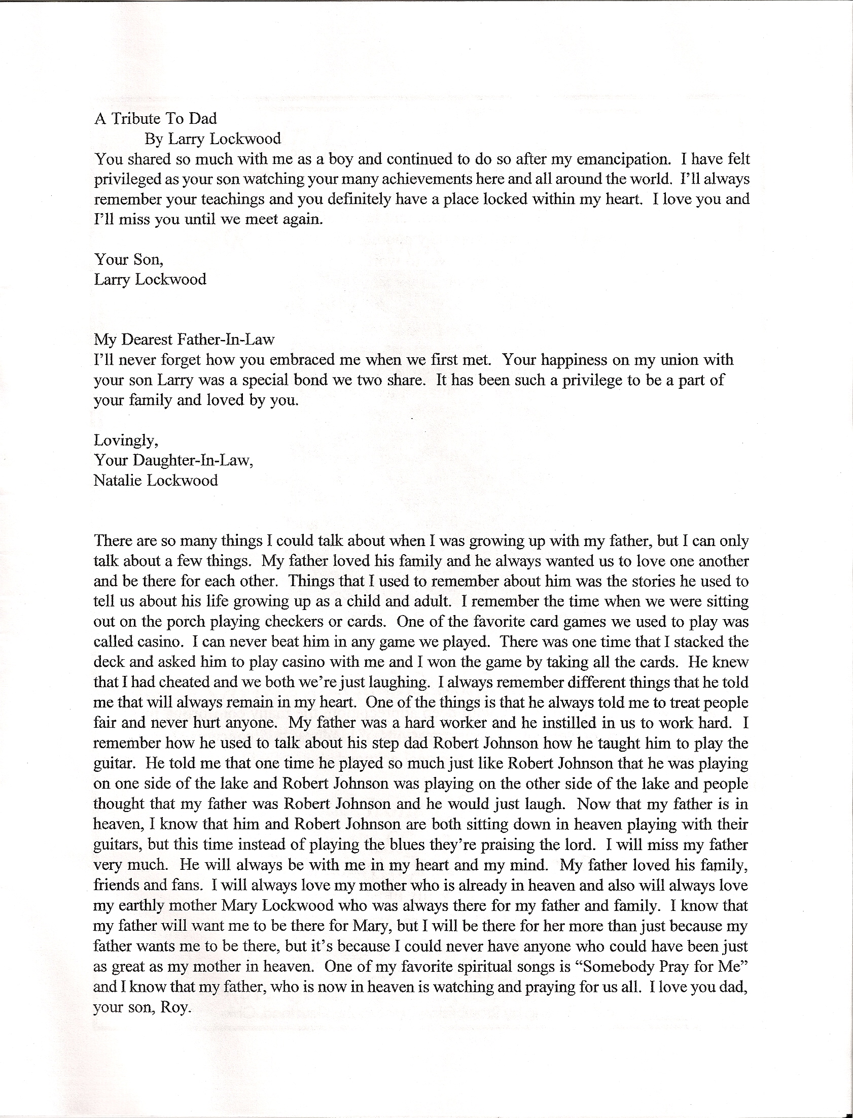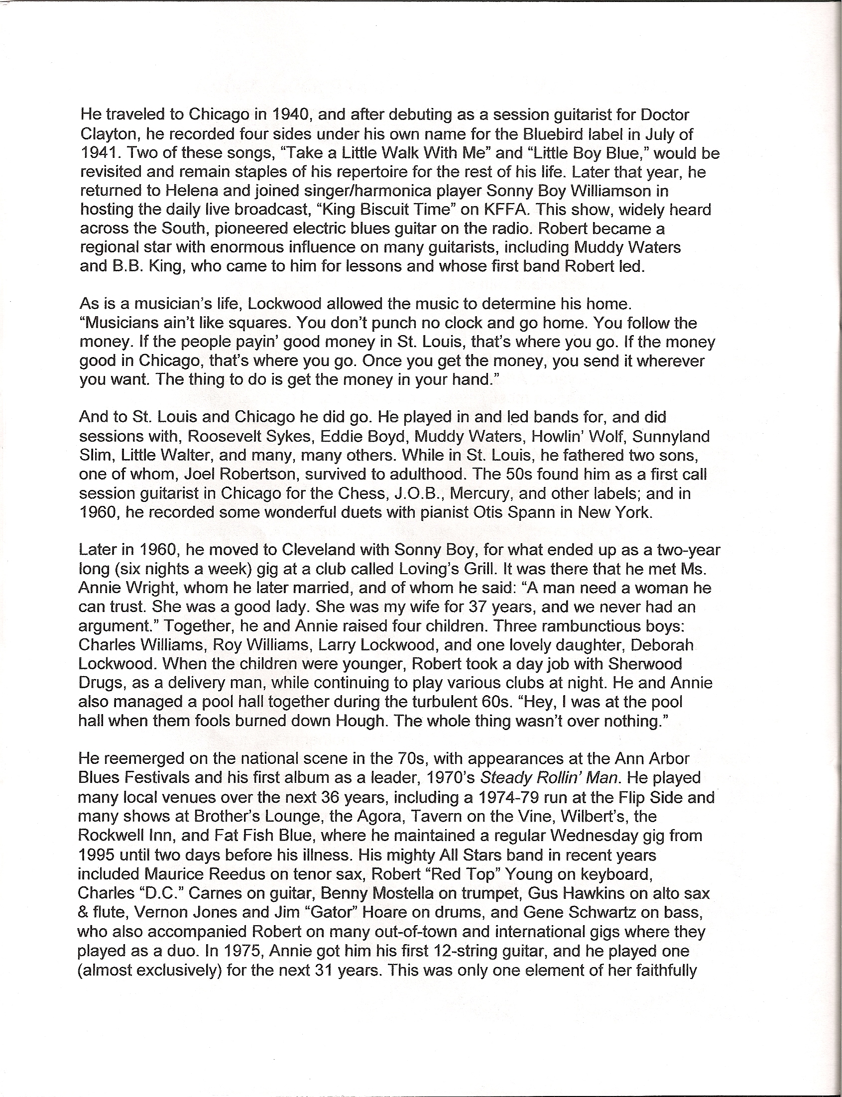Program from Robert Lockwood, Jr.’s Memorial Services Here is the program from Robert Lockwood, Jr.’s Memorial Services: Back to news articles index Share this: Click to share on X (Opens in new window) X Click to share on Facebook (Opens in new window) Facebook Like Loading...