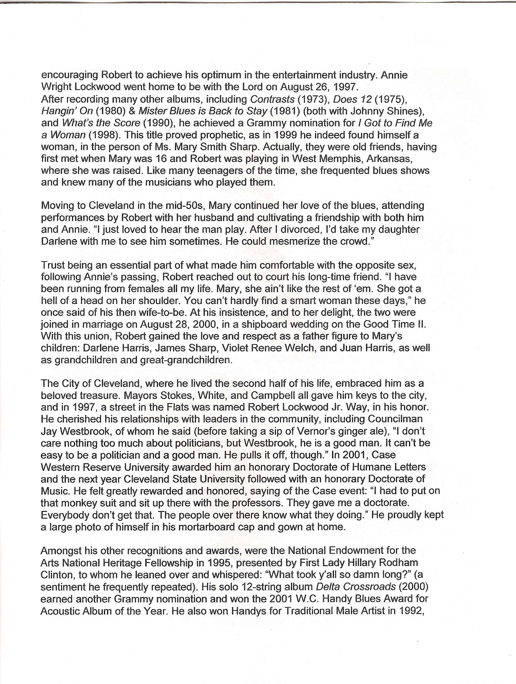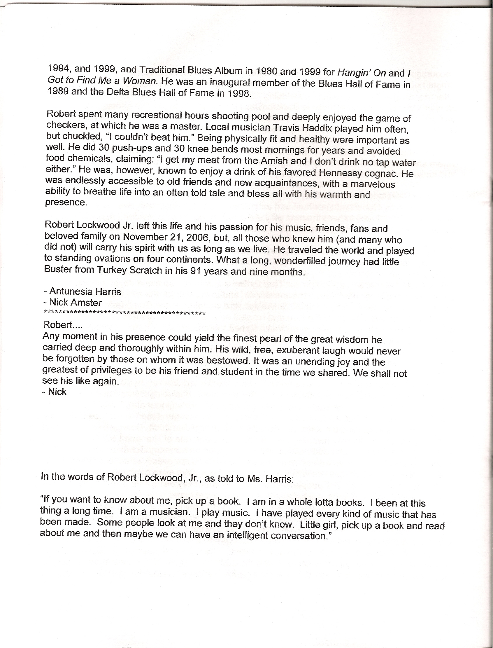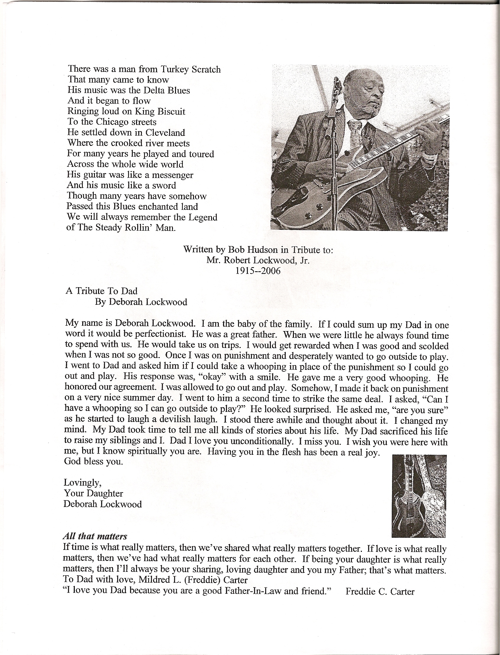 Program from Robert Lockwood, Jr.’s Memorial Services Here is the program from Robert Lockwood, Jr.’s Memorial Services: Back to news articles index Share this: Click to share on X (Opens in new window) X Click to share on Facebook (Opens in new window) Facebook Like Loading...