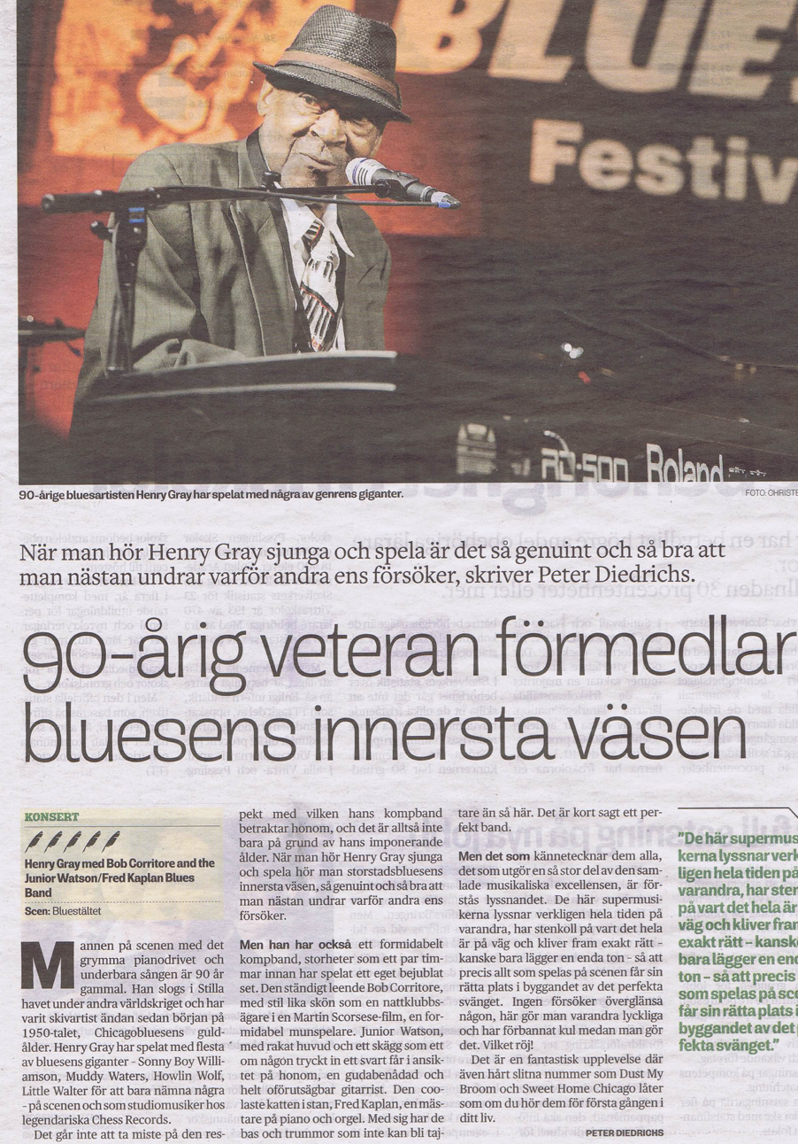 The man on the stage performing great piano and wonderful song is 90 years old. He was fighting in the Pacific Ocean in WW 2 and has been a recording artist since the early 50s, the golden age of the Chicago blues. Henry Gray has appeared with most of the giants of the blues – Sonny Boy Williamson, Muddy Waters, Howlin Wolf, Little Walter just to mention a few – on the stage and as a studio-musician at the legendary Chess Records. You can’t miss the respect his band gives him, and this is not only because of his impressive age. When you hear Henry Gray sing and play, you can hear the essence of big city blues, so genuine and great that you almost wonder why others even try.