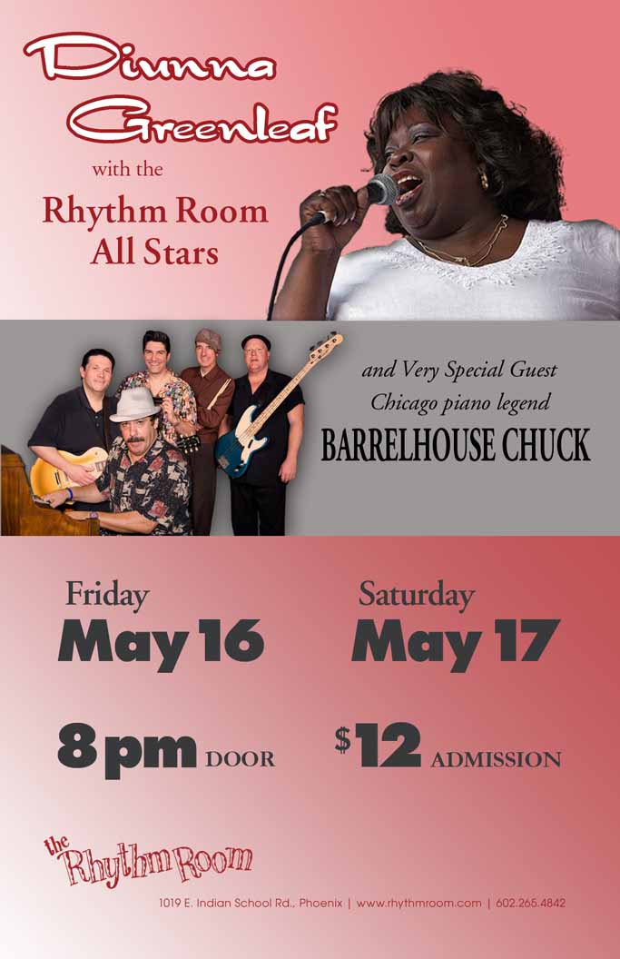 May 15, 2014 – Diunna Greenleaf With The Rhythm Room All-Stars & Barrelhouse Chuck Friday & Saturday Night at The Rhythm Room