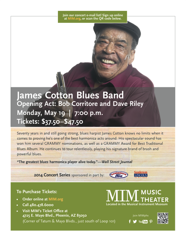 - Taboo CD Release Party November 29th at the MIM! Released earlier this year to rave reviews, Bob Corritore‘s all instrumental CD, Taboo, will be celebrated on Saturday, November 29th at the MIM Theatre, Phoenix’s premier performing arts center. Corritore will re-gather the all-star core band from this recording including Junior Watson, Fred Kaplan, Kedar Roy and Richard Innes. Special thanks to co-producer Clarke Rigsby of Tempest Recording, and to the prestigious record label Delta Groove Music. Tickets are on sale now and though over 100 tickets have already sold, there are great seats still available! For more information and to purchase tickets click here.