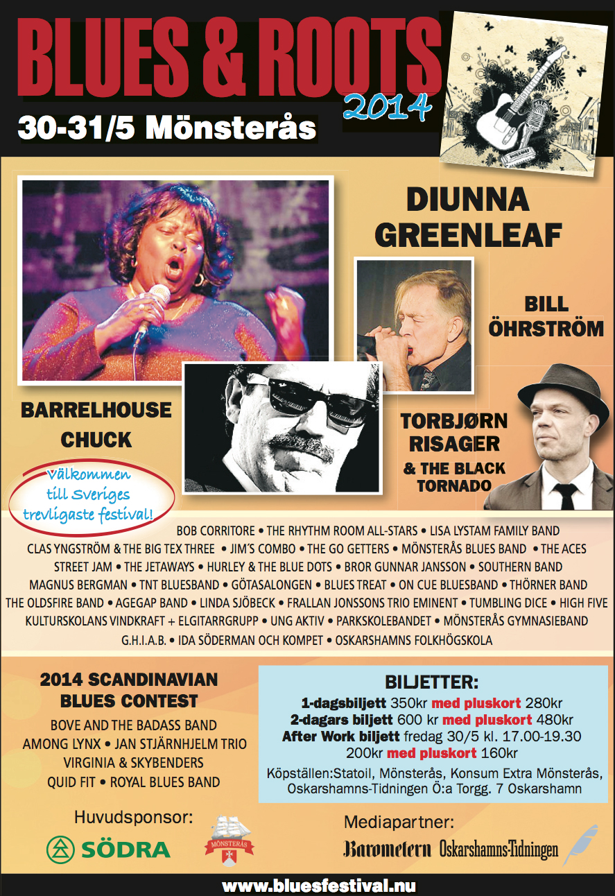 Diunna Greenleaf, Barrelhouse Chuck and The Rhythm Room All-Stars to play Sweden this week! The Mönsterås Blues Festival in Mönsterås, Sweden happens this Friday & Saturday, May 30 & 31. This will be the 40th anniversary of this grand event! This year’s lineup will feature Diunna Greenleaf, Barrelhouse Chuck, The Rhythm Room All-Stars, Lisa Lystam, Jim’s Combo, The Go Getters, Hurley & The Blue Dots, The Jetaways, Bror Gunnar Jansson, Thorbjorn Risager, Ulf Sandström, Clas Yngström & The Big Tex Three, Bill Ohrström, Mönsterås Blues Band and more! To see the event poster click here!