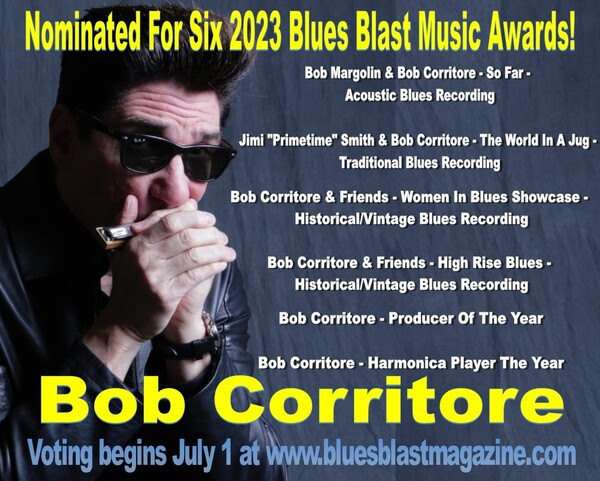 Bob Corritore is nominated in two categories: Harmonica and Traditional Blues Album. Voting is going on right now at www.blues.org.