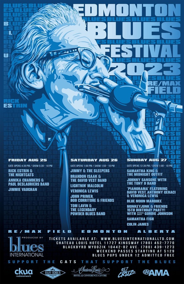 08/26/23: Edmonton, Canada – Edmonton, Blues Festival, John Primer & Bob Corritore with Jimi Primetime Smith, Anthony Geraci, Bob Stroger, Wes Starr.