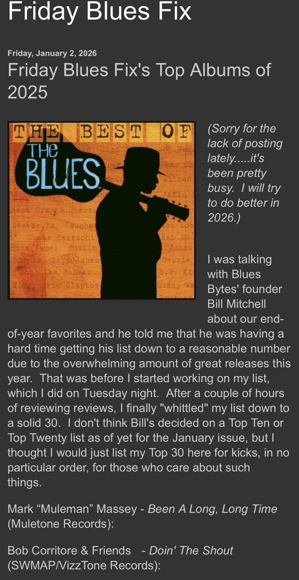 February 20, 2026 – Bob Is Nominated For A Blues Music Award!