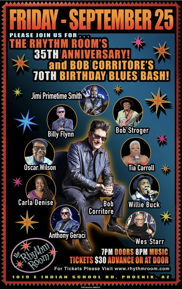 05/29/26: Phoenix, AZ – Rhythm Room, Jimi Primetime Smith/Bob Corritore Blues Band with special guest Carla Denise.