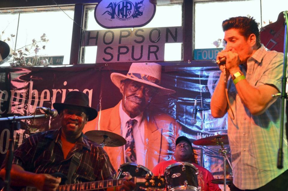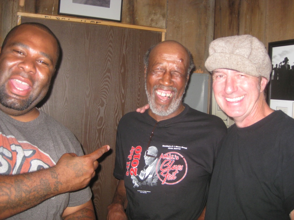 Dave Riley, Chuck “Popcorn” Lowden, Bob Corritore at the Pinetop Perkins Memorial Homecoming at Hopson’s Plantation in Clarkesdale, MS – October 9th