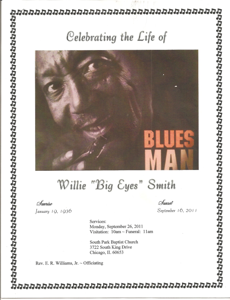 It was sad to attend Willie “Big Eyes” Smith’s funeral on September 26th in Chicago. Here is the funeral program.