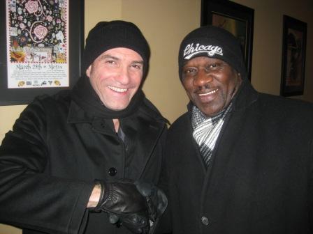 Bob Corritore and Mud Morganfield at Rat Trax Studios in Chicago, IL after completing the sessions for Mud’s CD. Note it was below zero weather during that time!