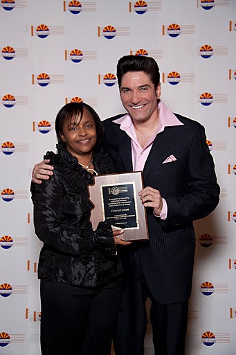 Audrey Donson (Chico Chism’s daughter) and Bob Corritore at theArizona Musicians and Entertainment Hall of Fame induction ceremonyon February 13, 2011 at the Orpheum Theatre in Phoenix. At this ceremony, Chico Chism was inducted. Bob was honored to present the trophy to Chico’s daughter. Chico was a major player in the Phoenix blues scene until his passing in 2007.