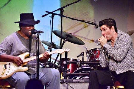 Tommy Castro called Bob to join him on a Jimmy Reed number on September 16th, the opening day of the three day Rhythm Room 20th Anniversary celebration.
