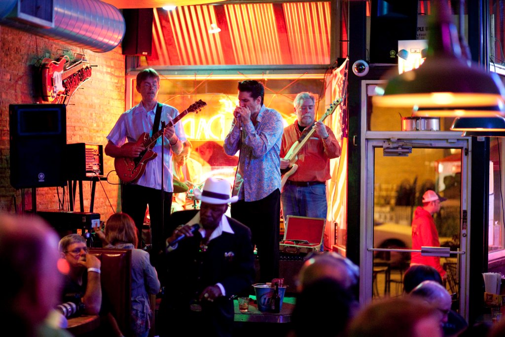 Mitch Kashmar, Bob Corritore, Big Pete, Randy Chortkoff With an Amazing Band of Jimi Bott (Pictured), Kirk Fletcher, Alex Schultz & Willie J. Campbell (Obscured)