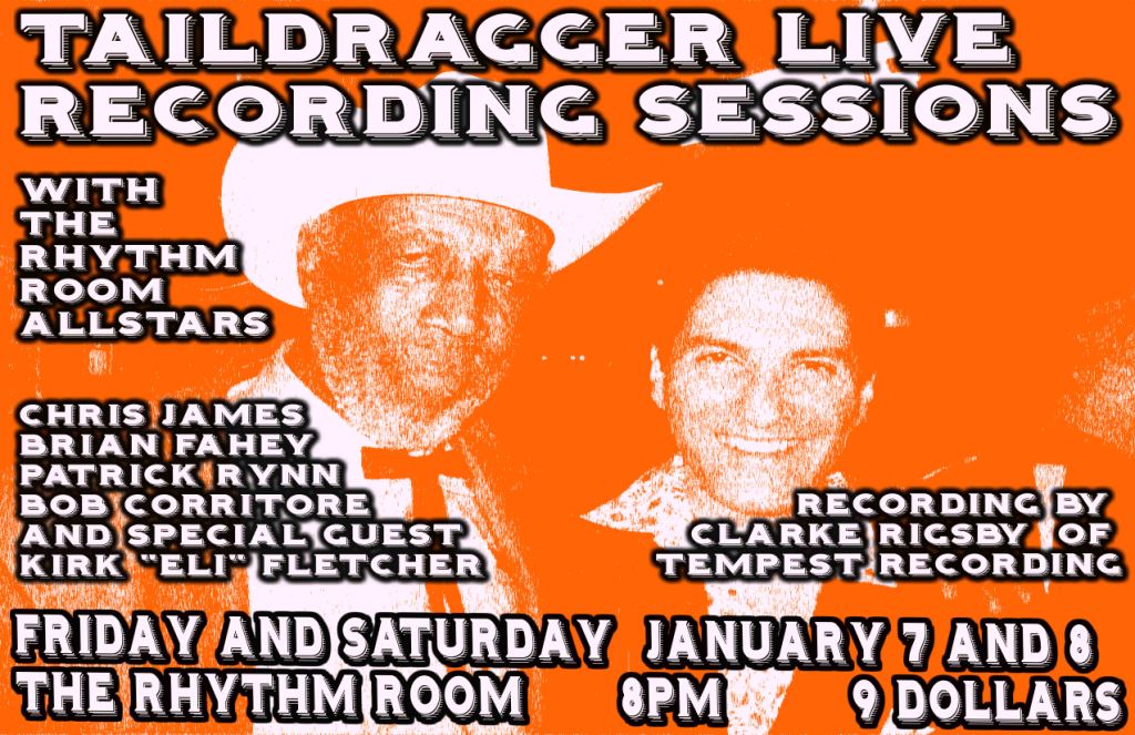 Bob Corritore brought Tail Dragger to The Rhythm Room for a live recording session on January 7th and 8th. Tail Dragger was backed by the Rhythm Room All-Stars with special guest Kirk Fletcher. Some powerful Chicago Blues was played.