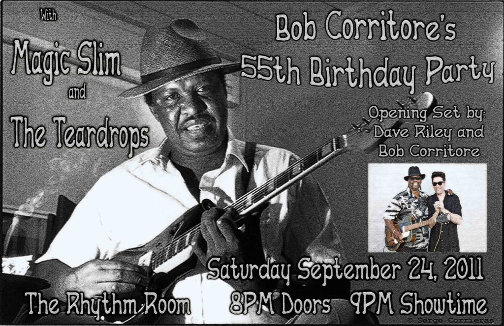 Bob Corritore was called on stage to perform with Magic Slim at Bob’s 55th birthday party on September 24th at The Rhythm Room. Dave Riley and Bob Corritore did the opening set that night with guests Jessi Colter and Jerry Lawson each playing a song.