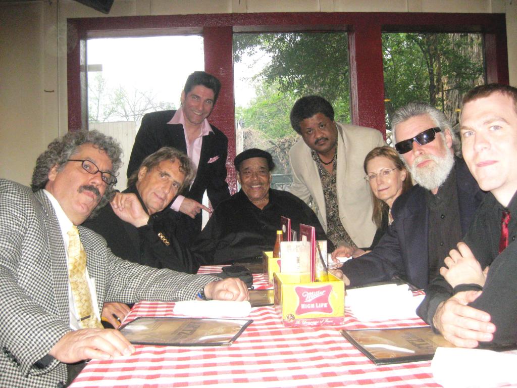 On March 28th, immediately after Pinetop Perkins’ funeral in Austin, Texas, a group of Pinetop’s close friends gathered at Artz Rib House for dinner to honor this great man. Included in this photo are (Left to Right) Barrelhouse Chuck, David Maxwell, Bob Corritore, James Cotton, Noel Neal, Jacklyn Hairston (James Cotton’s wife), Paul Oscher, and Little Frank, There was unspoken love and respect for Pinetop that filled this group’s collective consciousness.