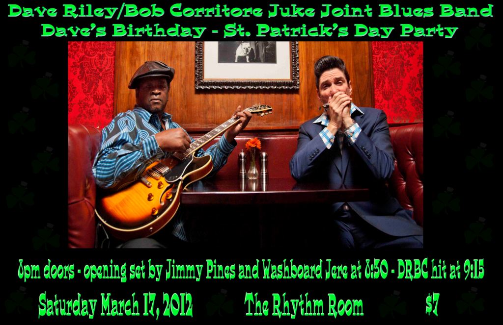 Dave Riley / Bob Corritore Juke Joint Blues Band on Dave’s Birthday, St. Patrick’s Day – March 17th