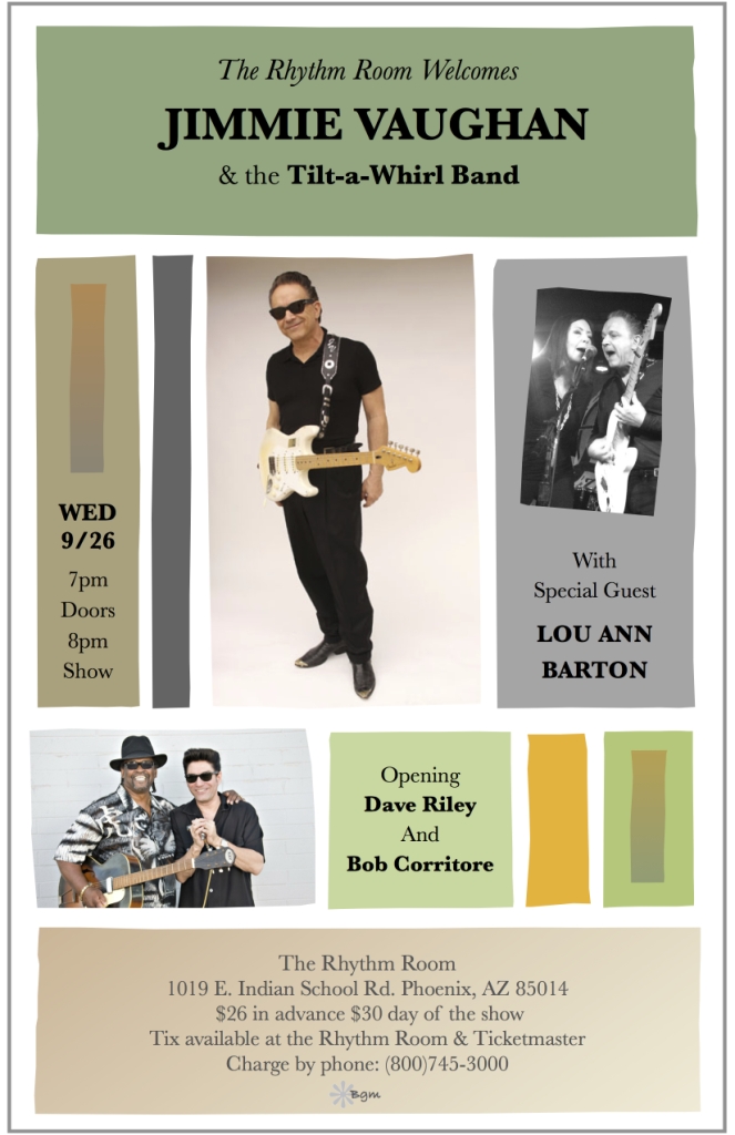 Jimmie Vaughan & The Tilt-A-Whirl Band With Special Guest Lou Ann Barton – Opening Set by Dave Riley & Bob Corritore – September 26th