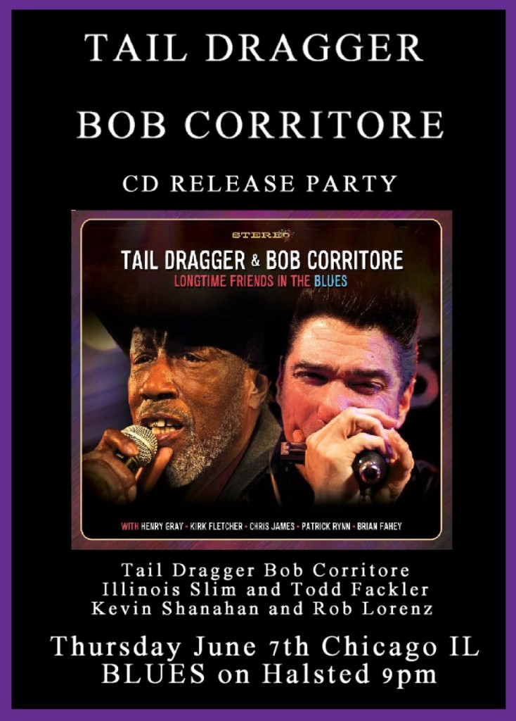 Tail Dragger & Bob Corritore Longtime Friends in the Blues CD Release Party at Blues on Halsted in Chicago, IL – June 7th