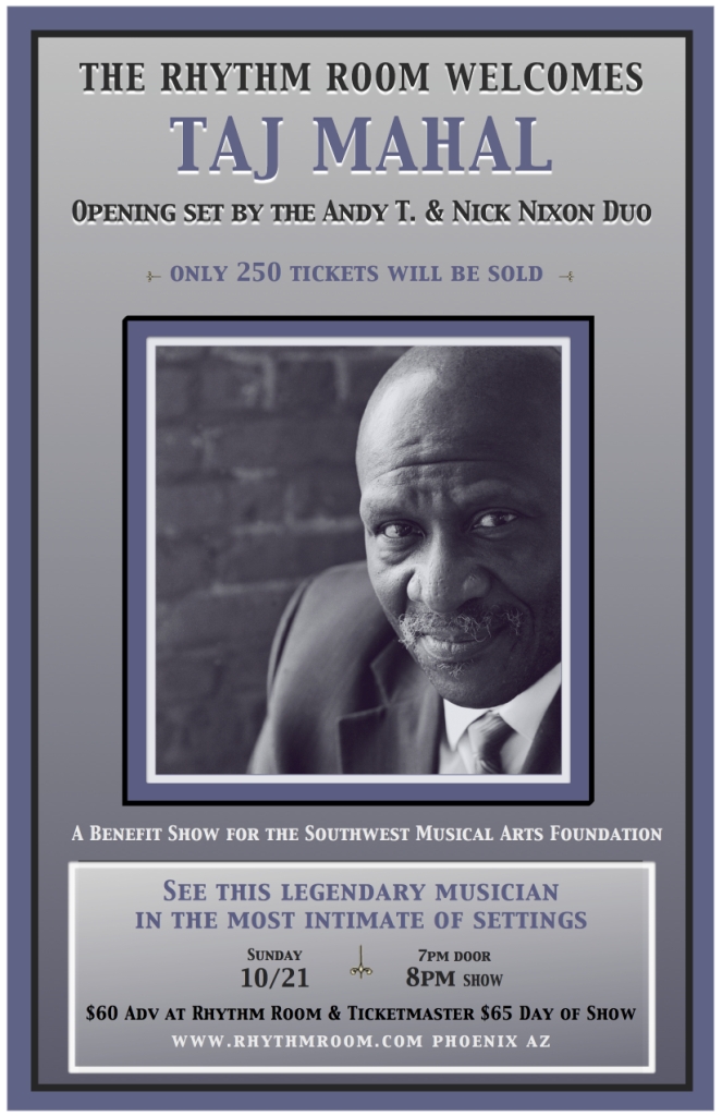 Bob Corritore Presented Taj Mahal at The Rhythm Room With Opening Set by Andy T. & Nick Nixon – October 21st