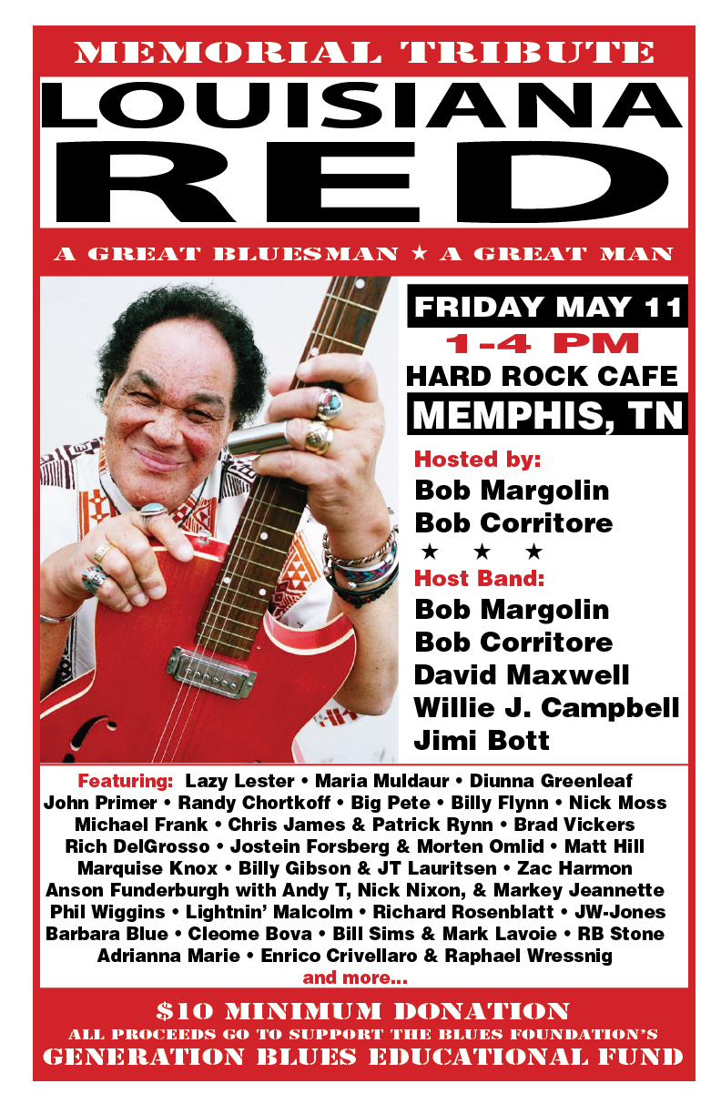 Louisiana Red Memorial Tribute on May 11th at The Hard Rock Cafe in Memphis, TN
