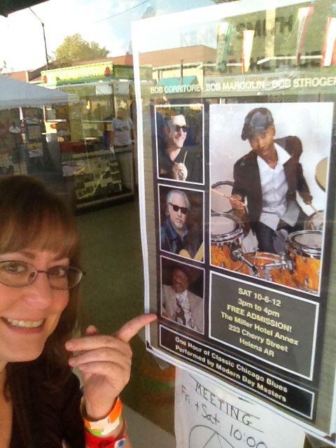 Amy Brat Enjoying Her Poster Design in a Window at The King Biscuit Blues Festival – October 5th