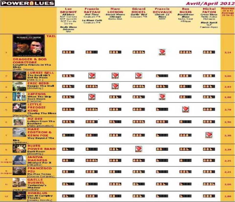 Tail Dragger & Bob Corritore’s Delta Groove CD Longtime Friends in the Blues was #1 on the Powerblues Radio Charts in the month of April! Powerblues is a radio reporting of the French speaking blues radio shows in Europe and Canada. Quite an honor.