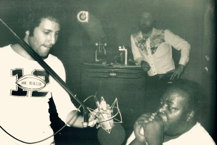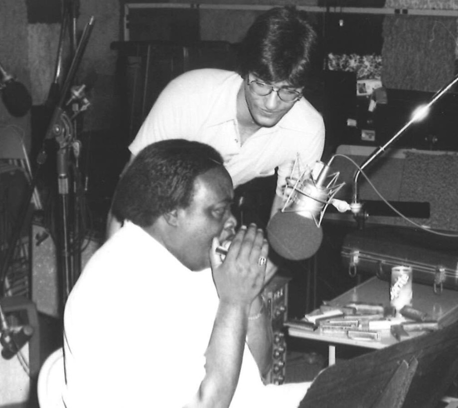 Freddie Breitberg (engineer), Big Leon Brooks, and in the back Steve Wisner (co-producer). Photo Jim O’Neal.