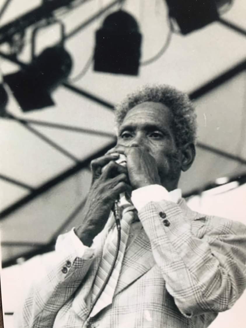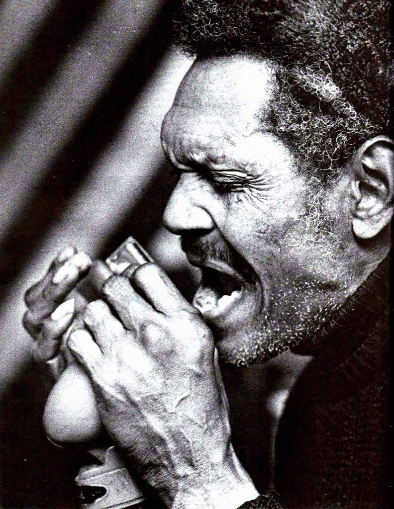 Big Walter Horton playing harmonica with no hands! Photo Ray Flerlage.