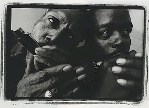Big Walter Horton & Lynwood Slim on a Visit to See Pat Hare at the Minnesota State Prison (Photo by Pat Hare, Courtesy of Lynwood Slim)