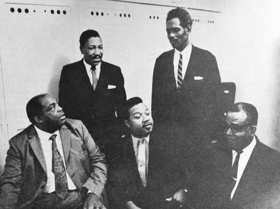 Willie Dixon‘s Chicago Blues All-Stars. Left to right: Lafayette Leake, Willie Dixon, Buster Benton, Frank Swann, Big Walter Horton at Blues Factory, Chicago, 1971. Photo courtesy Sonny Burnett.