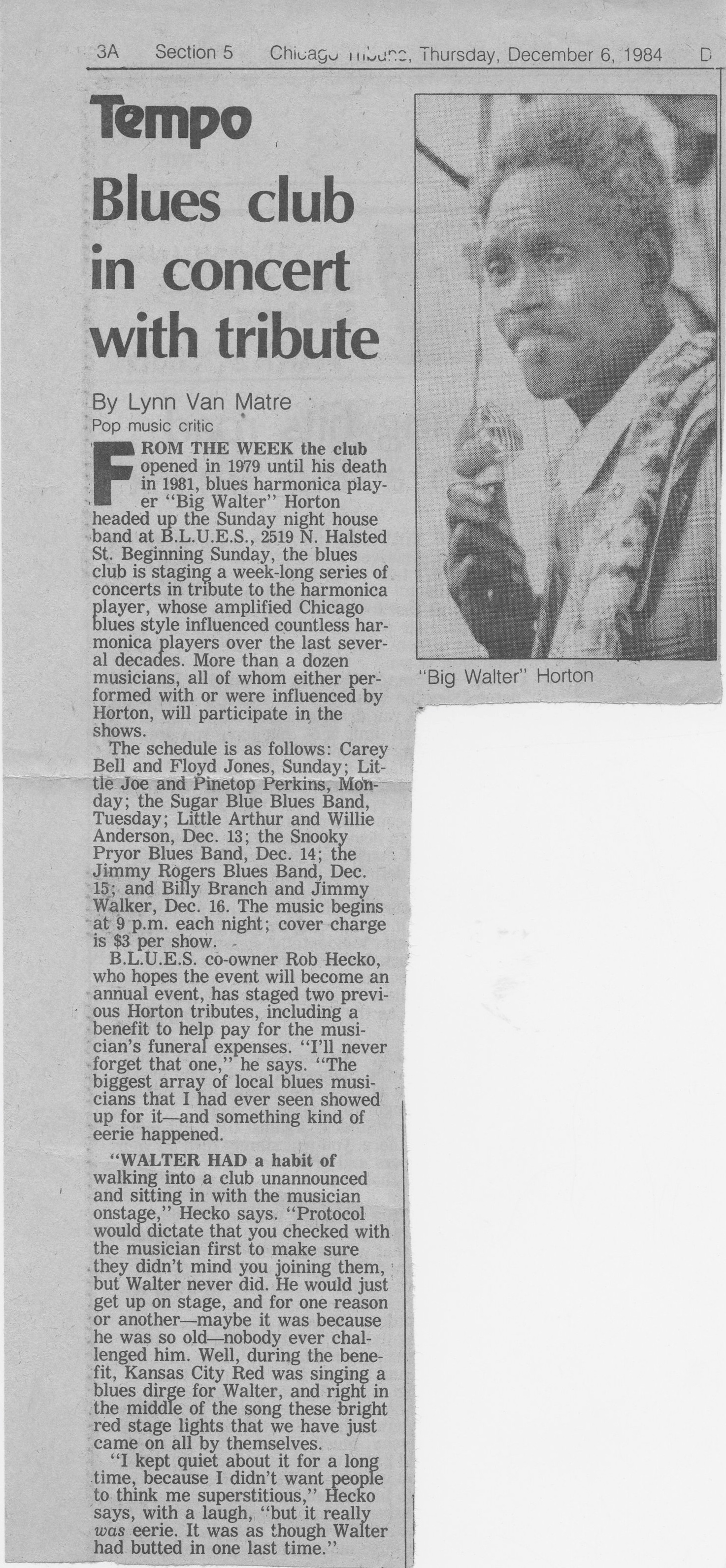Big Walter Advertising from BLUES On Halsted, Chicago.