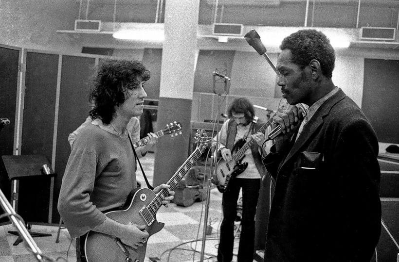 Walter Horton with the original Fleetwood Mac in the recording studio in early 1969, Chicago.
