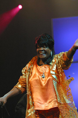 Koko Taylor beeing escorted onstage by Randy Chortkoff