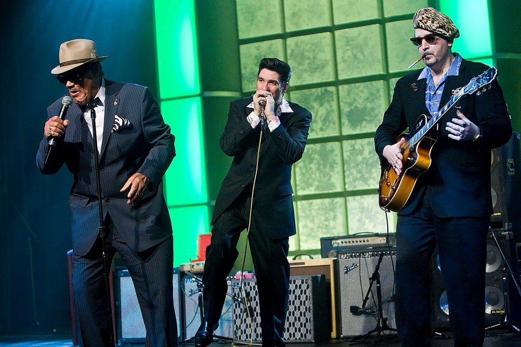 Eugene “Hideaway” Bridges, Candye Kane, Rick Estrin (Photo by Bob Corritore)