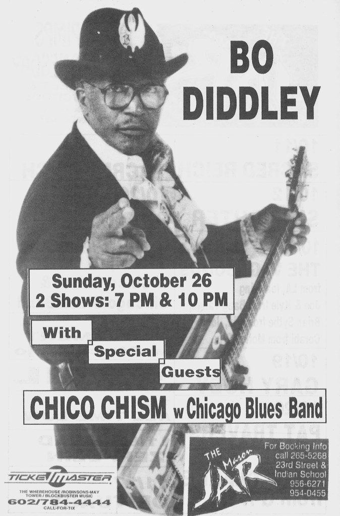 Promotional flyer for a Bo Diddley gig at Phoenix’s Mason Jar – Late 1990s