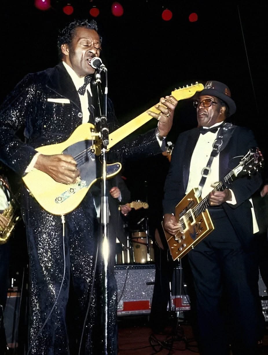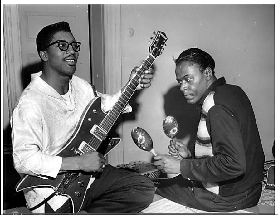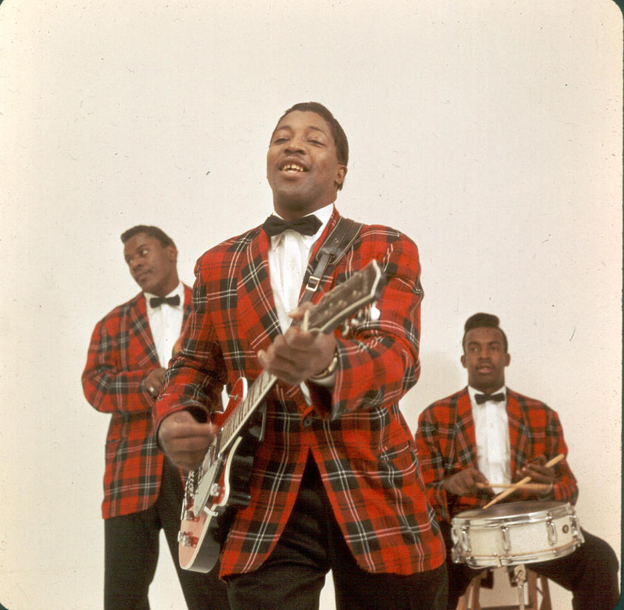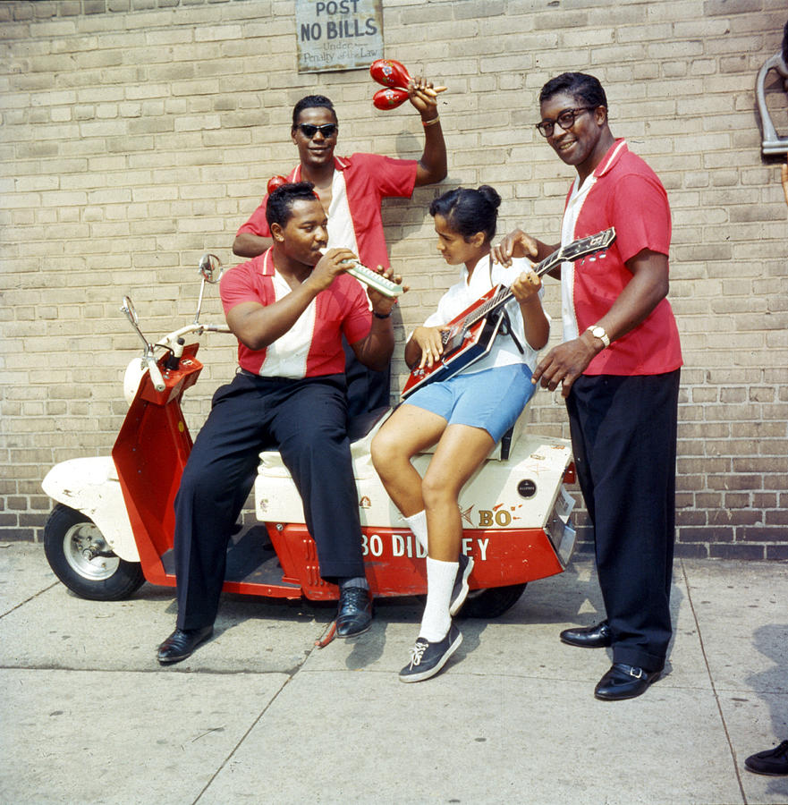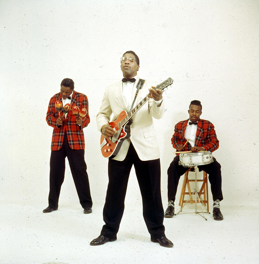 Bo Diddley and band. Photo Michael Ochs Archives.
