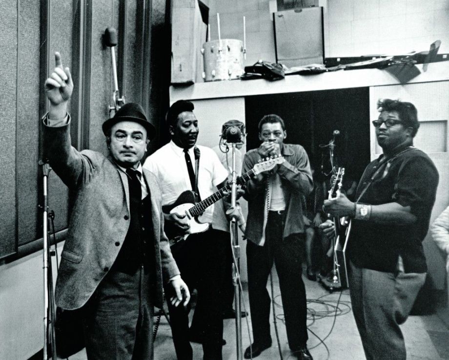 Phil Chess, Muddy Waters, Little Walter, and Bo Diddley for Chess Records’ “Super Blues” Session at Ter Mar Studios, Chicago, in January, 1967.
